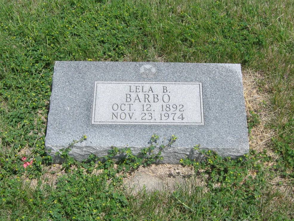 | Barbo | Lela B. | 10/12/1892 | 11/23/1974 | Large stone has BARBO on east side and LAWILS on the west side. Eastern star emblem. Individual footstones. Obit | | |