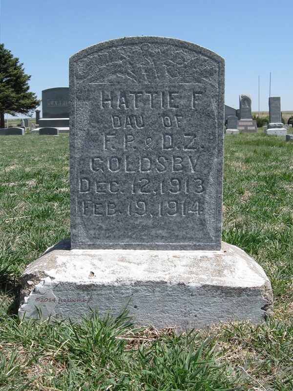 | Goldsby | Hattie F. | 12/12/1913 | 2/19/1914 | Daughter of F.P. & D.Z. Goldsby | | |