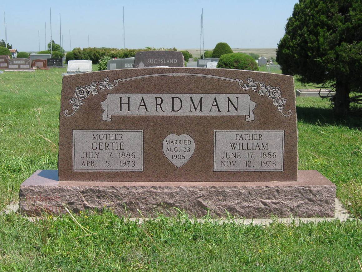 | Hardman | William | 6/17/1886 | 11/12/1973 | Father; Married August 23, 1905 | Same stone as Gertie Hardman. Obit | |