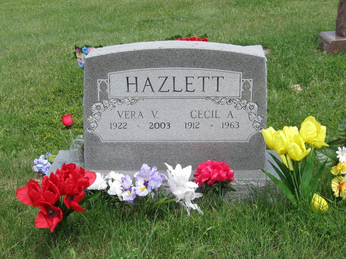 | Hazlett | Vera V. | 1922 | 2003 | Same stone as Cecil Alfred Hazlett. | | |