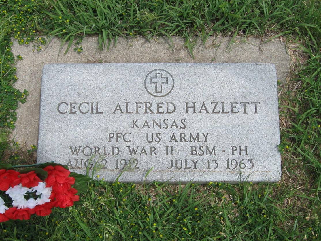 | Hazlett | Cecil Alfred | 8/2/1912 | 7/13/1963 | Also military marker: Kansas; Pfc US Army; World War II BSM - PH Obit | | |