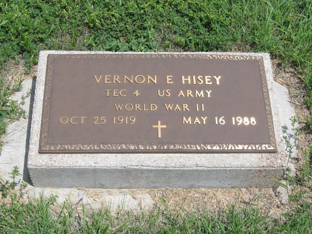 | Hisey | Vernon | 10/25/1919 | 5/16/1988 | TEC 4 U S ARMY; World War II | | |
