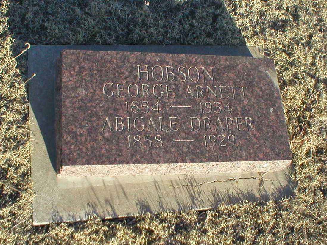 | Hobson | George Arnett | 1854 | 1934 | Same stone as Abigale Draper Hobson. | | |